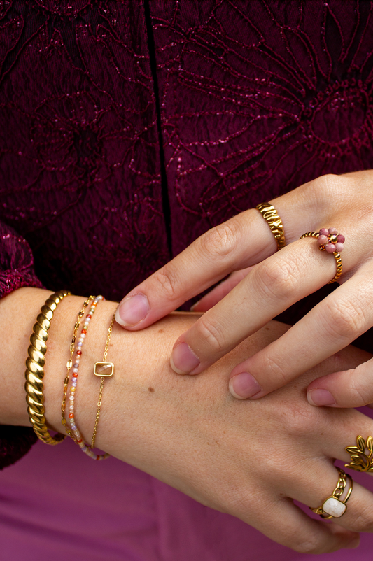 ARMBAND PLATTE SCHAKEL MET STERRETJES