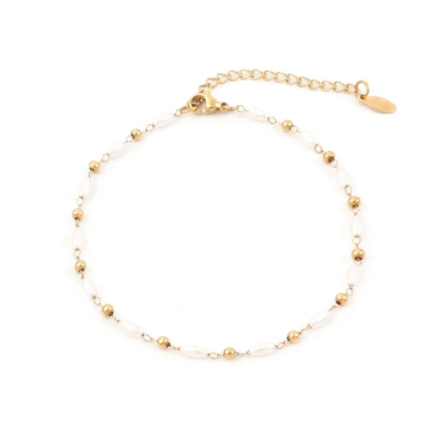 Hoe leuk zijn deze roestvrij stalen parel enkelbandjes? Super leuk boven een sneaker of een slipper.