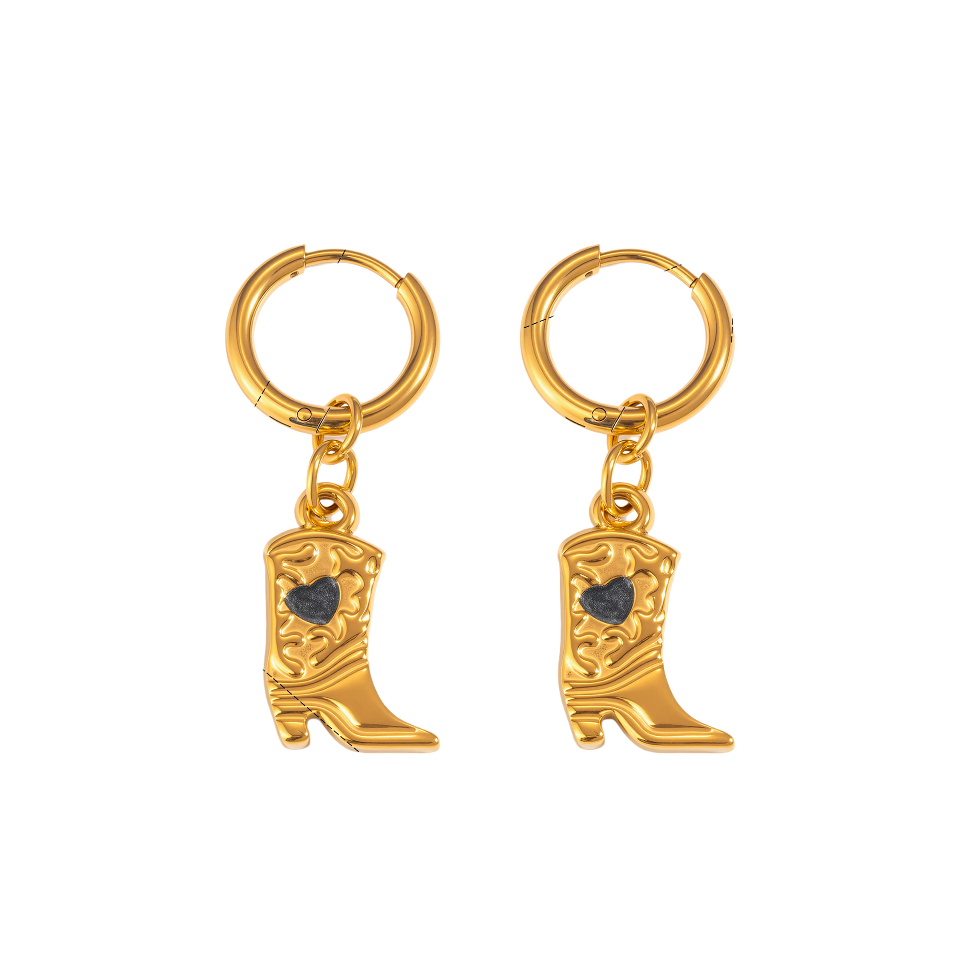 Mooie kleine hoops met een cowboy laars bedel die een zwart detail heeft. Draag deze oorbellen om je outfit mee op te vrolijken! Of om ze te combineren met meerdere gaatjes.