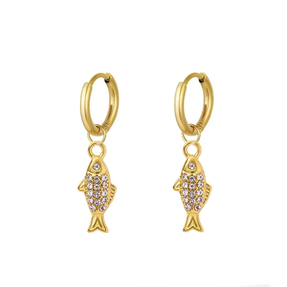Hoe gaaf zijn deze roestvrij stalen vis oorbellen met strass diamantjes?